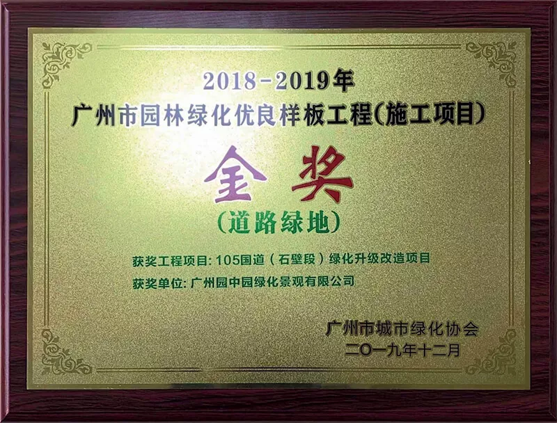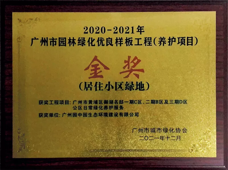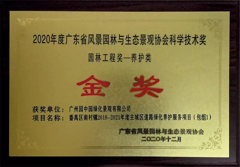 2020-2021廣州(zhou)市園林綠化優良樣闆工程(養護項目)金獎