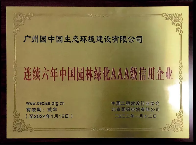 連續六年(nian)中國園林綠化AAA級信用企(qi)業