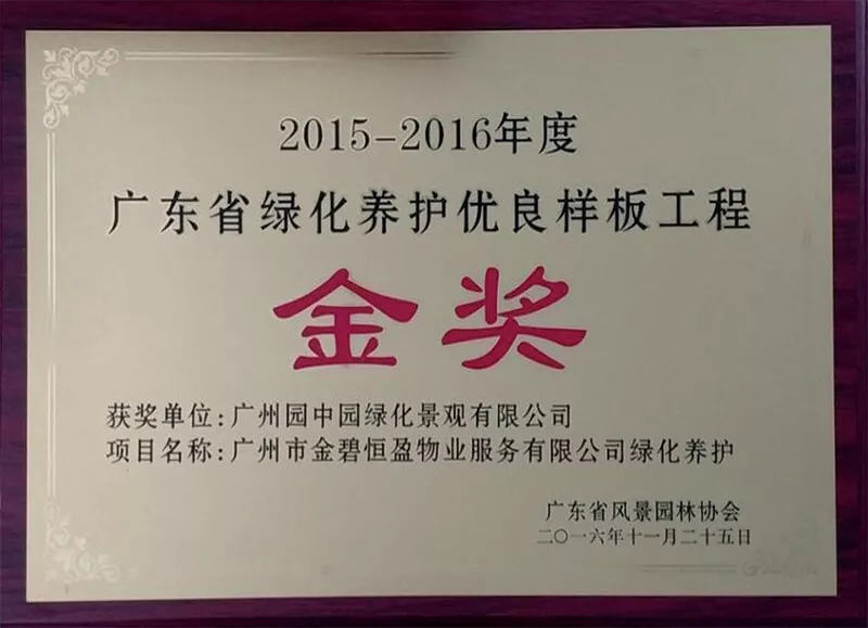 2015-2016廣東省綠化養護優良樣闆工(gong)程金獎